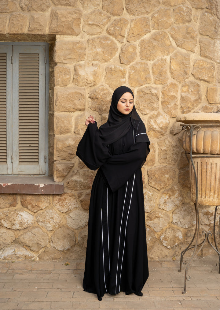 أضيفي لمسة من الأناقة العصرية والبساطة لإطلالتكِ اليومية مع عباية كاجوال بقيطان أبيض وكسرات. تتميز هذه العباية بتصميم عملي ومريح مزين بقيطان أبيض يضفي لمسة من التباين الراقي، إلى جانب الكسرات التي تمنحها انسيابية وجمالًا في الحركة. تصميمها العصري يجعلها مناسبة لمختلف المناسبات اليومية، وتلائم جميع الأذواق.